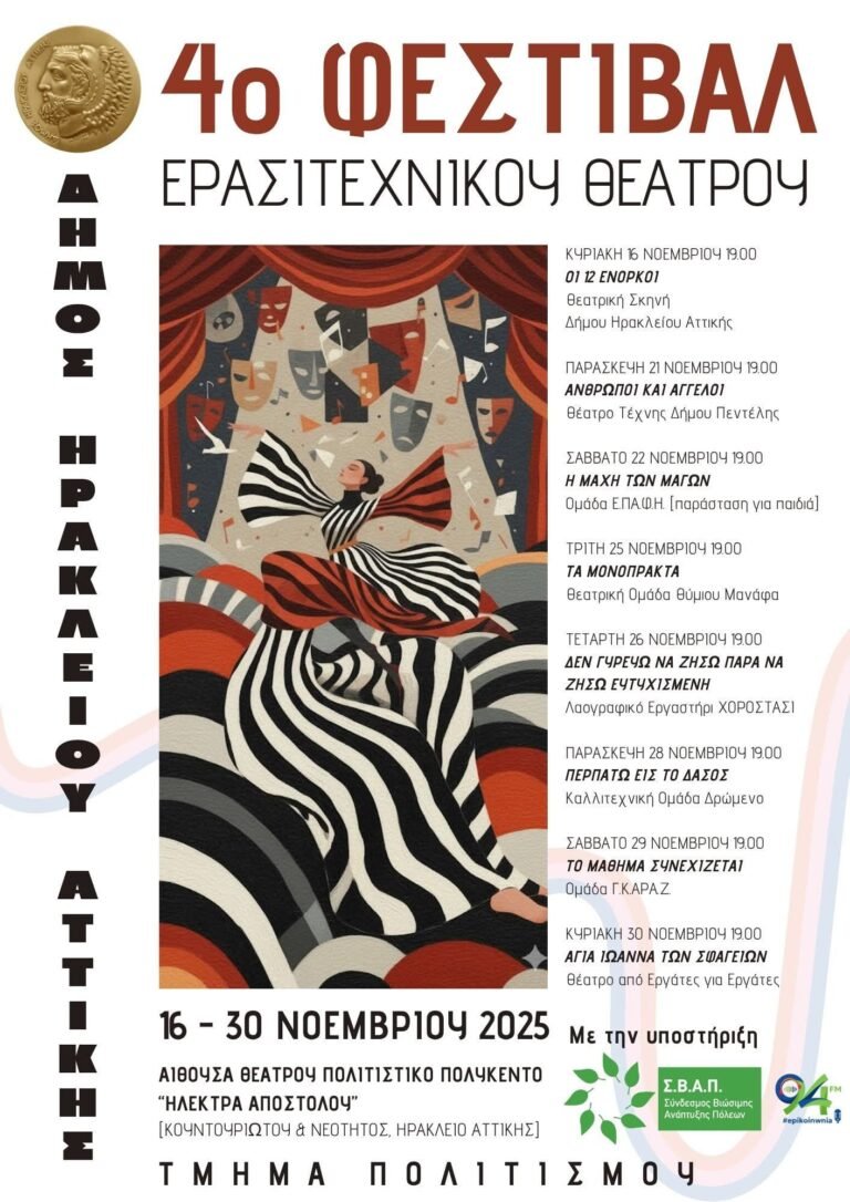 Η Θεατρική μας ομάδα συμμετέχει στο 4ο Φεστιβάλ Ερασιτεχνικού Θεάτρου του Δήμος Ηρακλείου Αττικής με την θεατρική παράσταση: “Περπατώ εις το Δάσος” την Παρασκευή 28 Νοεμβρίου στο Πολύκεντρο Ηλέκτρα Άποστόλου